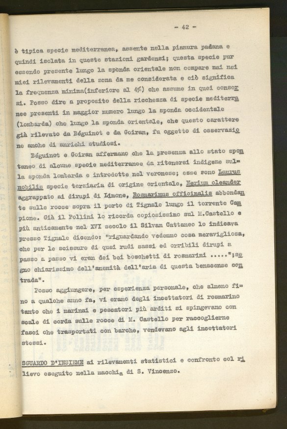 Ricerche ecologiche sulla vegetazione tra Torbole e Malcesine (Lago di Garda)