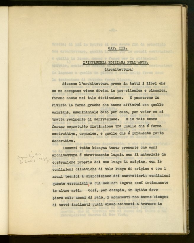 Descrizione: Tesi dattiloscritta ([I], III, 108, 6 c. : [3] tav. illustrate ; 28 cm.). Discussa presso la Facoltà di lettere e filosofia dell’Università degli studi di Firenze. Rilegata in tessuto originale con disegni decò. Contiene lettera con appunti, firmata. Pervenuta in biblioteca nel 2010 in seguito alla donazione di Anna Teicher, figlia di Jacob Leib Teicher, studente nel Regio Istituto di Studi superiori di Firenze, docente di ebraico post-biblico a Cambridge dal 1946 al 1971. Scheda mancante, dati relativi all'autrice verificati nell'Archivio storico, Università di Firenze, reg. Colloqui.