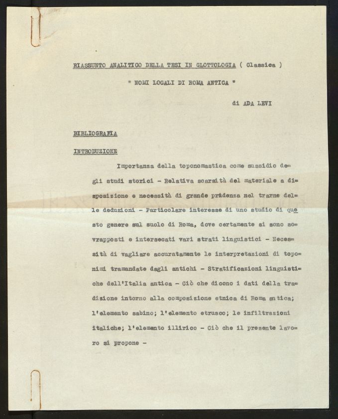 Descrizione: Tesi discussa presso la Facoltà di lettere e filosofia. Tesi dattiloscritta di glottologia. Relatore prof. Giacomo Devoto. In allegato: Riassunto analitico della tesi a cura dell'autrice; 5 Tavole. Dono di Daniele e Lea Levi Nissim.
