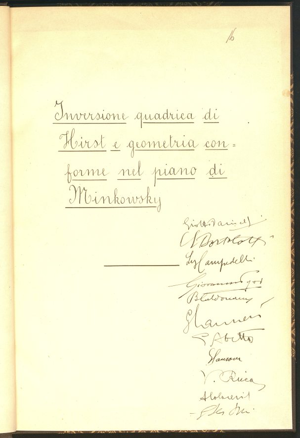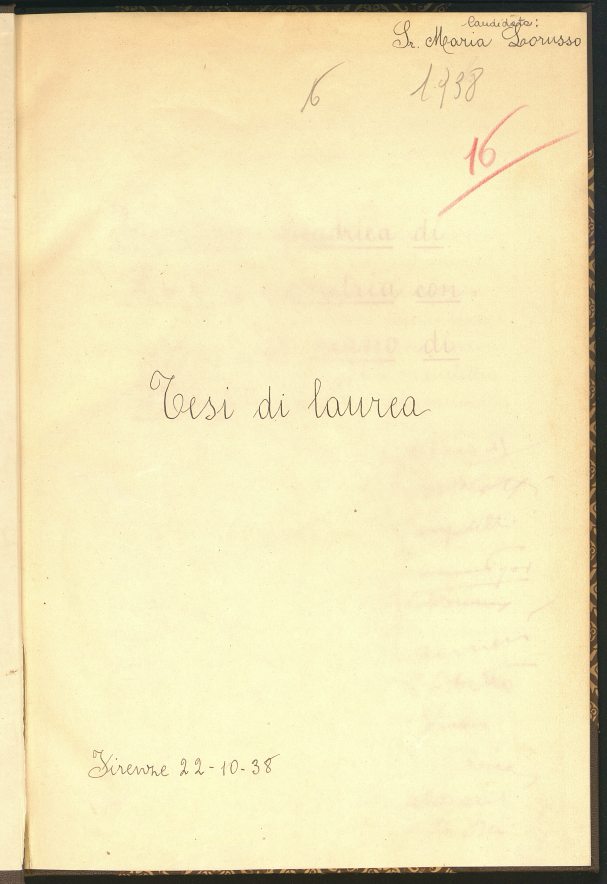 Descrizione: Tesi manoscritta (80 c.); 31 cm; pagine numerate solo sul recto. Tesi di laurea discussa presso la Facoltà di Scienze matematiche fisiche e naturali. Relatore Bortolotti Enea