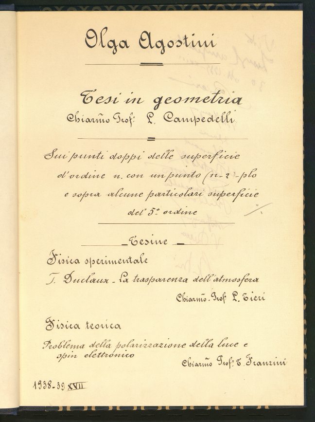 Descrizione: Tesi manoscritta (VIII, 78 c.); 29 cm.; pagine numerate solo sul recto. Tesi di laurea discussa presso la Facoltà Scienze matematiche fisiche e naturali. Relatore Campedelli Luigi