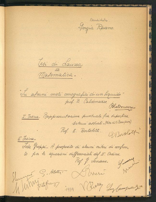 Descrizione: Tesi manoscritta (53 c.); 29 cm; pagine numerate solo sul recto. Tesi di laurea discussa presso la Facoltà di Scienze matematiche fisiche e naturali. Relatore Caldonazzo Bruto