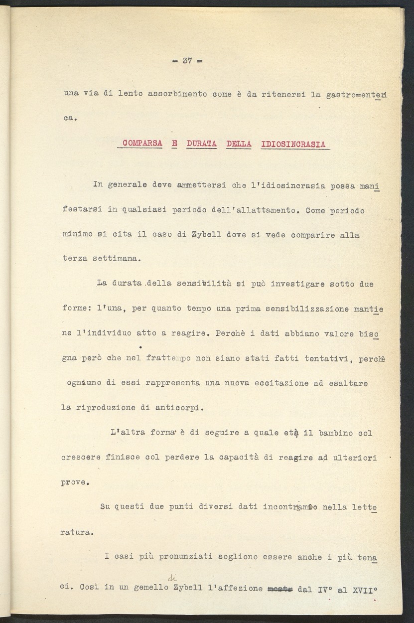 Sulla idiosincrasia da latte