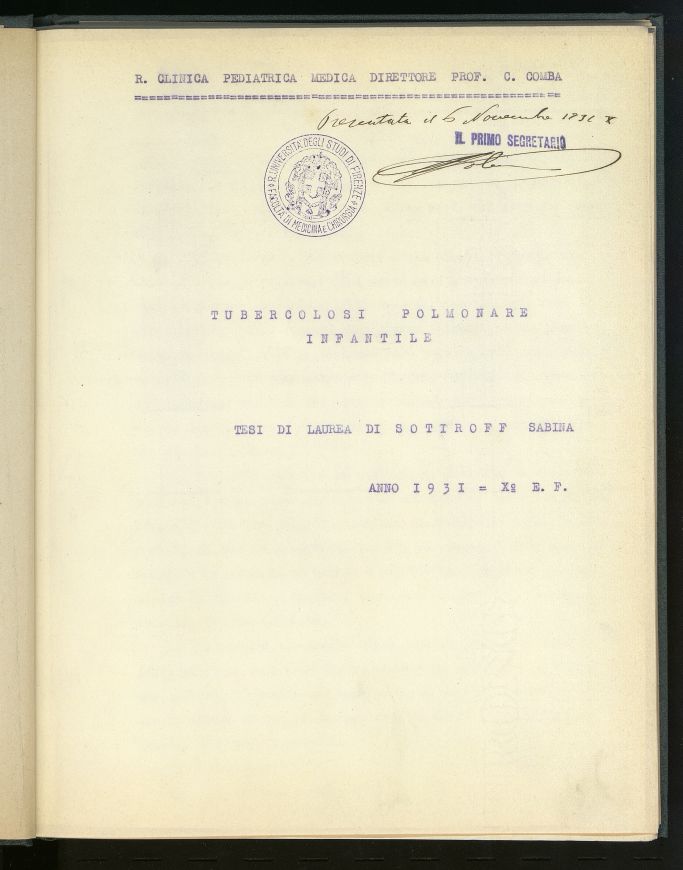 Descrizione: Tesi dattiloscritta; [I], 64, III p.; 29 cm.; pagine numerate solo sul recto. Tesi di laurea discussa presso la Facoltà di Medicina e Chirurgia, Clinica pediatrica