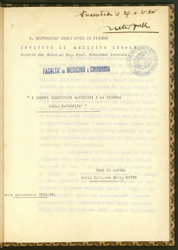 Descrizione: Tesi dattiloscritta; [I], 49, XIX p.; 28,5 cm.; pagine numerate solo sul recto. Tesi di laurea discussa presso la Facoltà di Medicina e Chirurgia, Istituto di Medicina legale