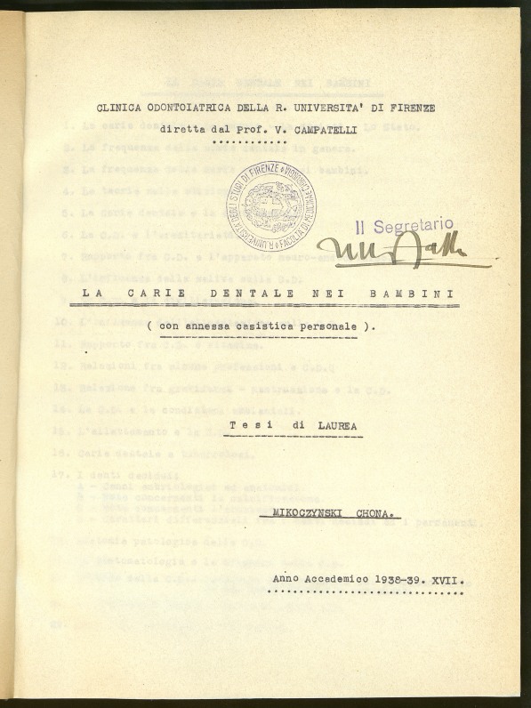Descrizione: Tesi dattiloscritta; 67, [2] p.; 5 c. di tav.; 28 cm.; pagine numerate solo sul recto. Tesi di laurea discussa presso la Facoltà di Medicina e Chirurgia, Clinica Odontoiatrica